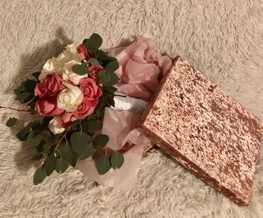 Al cofre se le añade flores, licor, peluches, perfumes y todo lo que desee añadir.