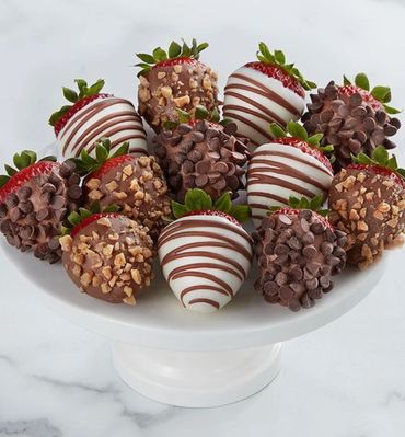 Las fresas son cubiertas con chocolate (color a escoger) o al natural.