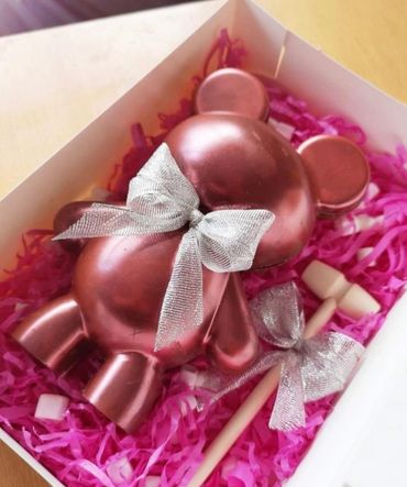 Estos chocolates se hacen en forma de: corazón, oso, huevo de Pascua, unicornio, flores, estrella, cuadrado, rectangular, y otros más. Se acompaña con fresas cubiertas con chocolates o dulces. Se incluye un martillo de madera para romperlo y encontrar la sorpresa. Cliente indica su sorpresa.